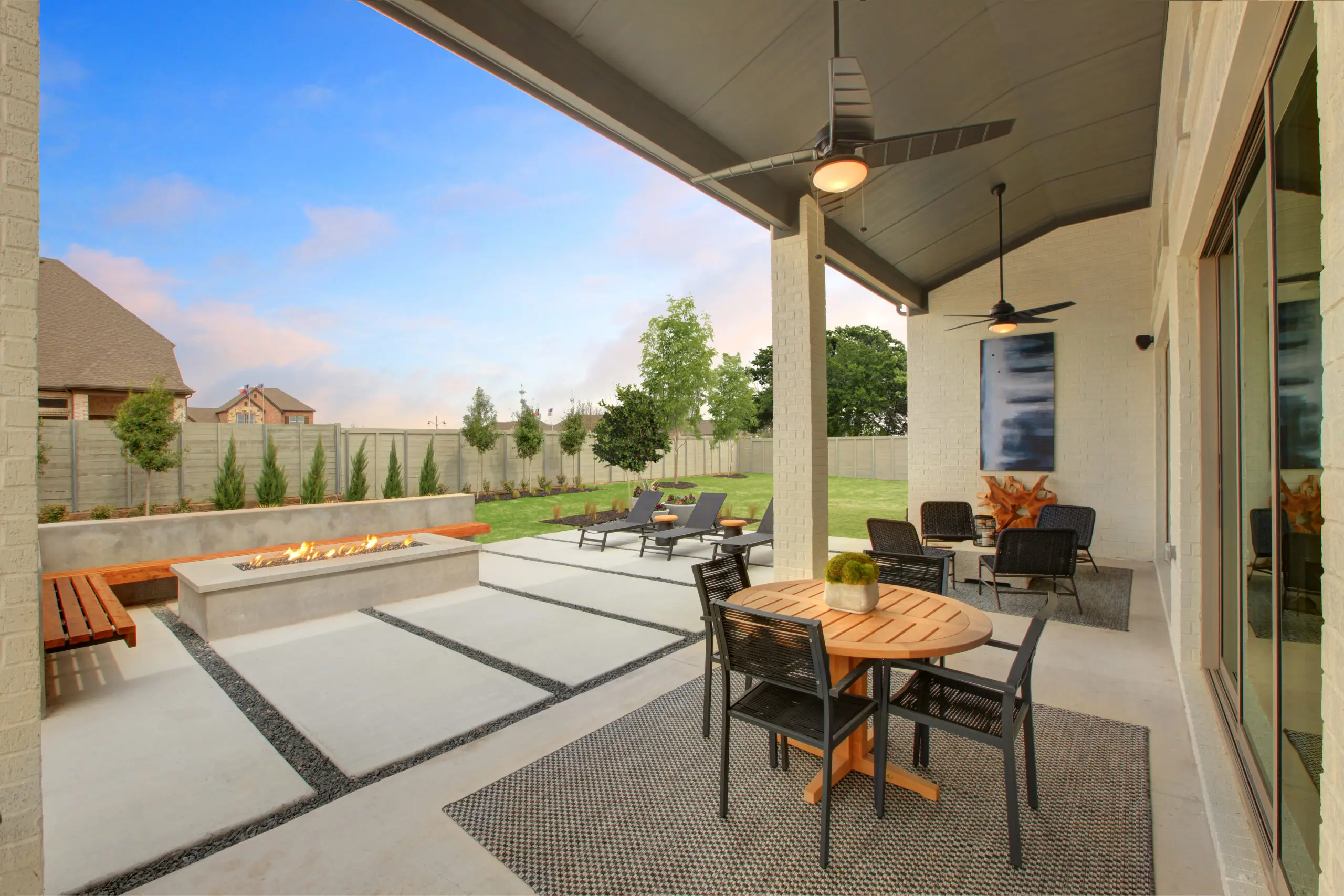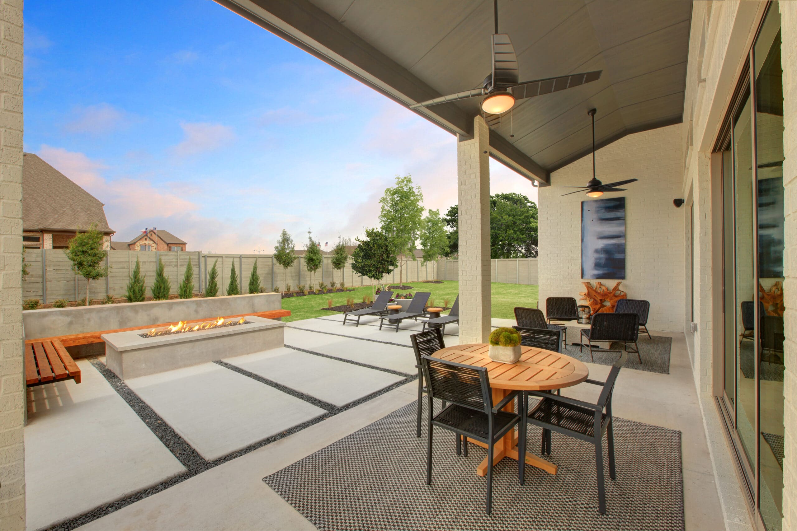 If your patio is exposed to Texas’s unpredictable weather, invest in furniture made from durable materials like aluminum, wrought iron, or weather-resistant cushions specifically designed for outdoor use. You’ll want to protect your investment with quality products. Balance comfort with elements that complement your home’s unique design for a pretty and functional backyard.